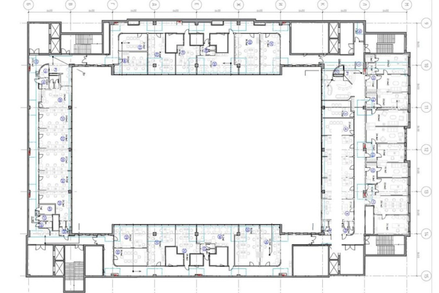 Роскошная отделка общих зон. Высота потолков от перекрытия до перекрытия – 3,6 м. Шаг колонн – 8,4x8,4 м.