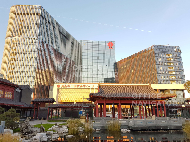 Уникальный китайский культурно-деловой центр. Три корпуса, 4-этажный стилобат с ландшафтным парком.