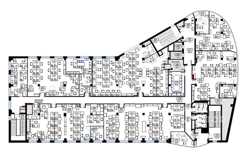 Эффективная планировка этажей позволяет адаптировать пространство под нужды бизнеса, а также размещать в помещениях больше рабочих мест, не жертвуя комфортом сотрудников.