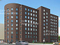 Это полностью кирпичное здание с четкими рядами одинаковых окон.