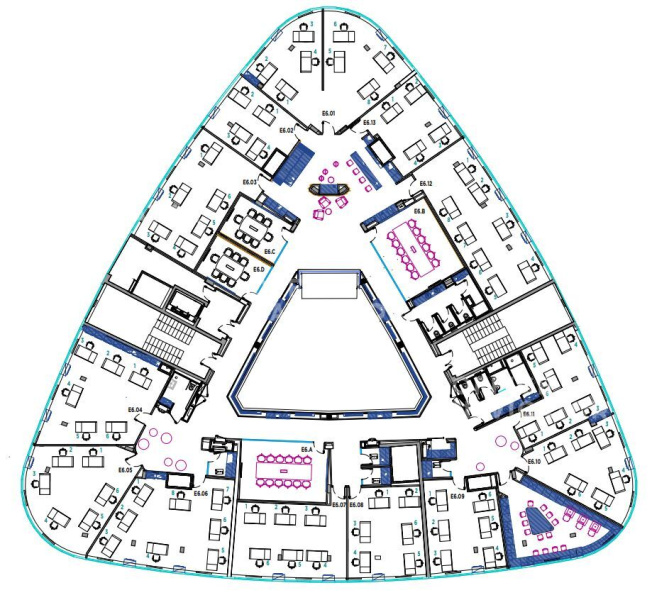 Комплексы представляют собой здания треугольной формы с закругленными углами.
