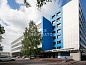 Внешний облик офисного центра выполнен в стиле Хай-тек: белые и синие акцентные сэндвич-панели, большая площадь остекления.