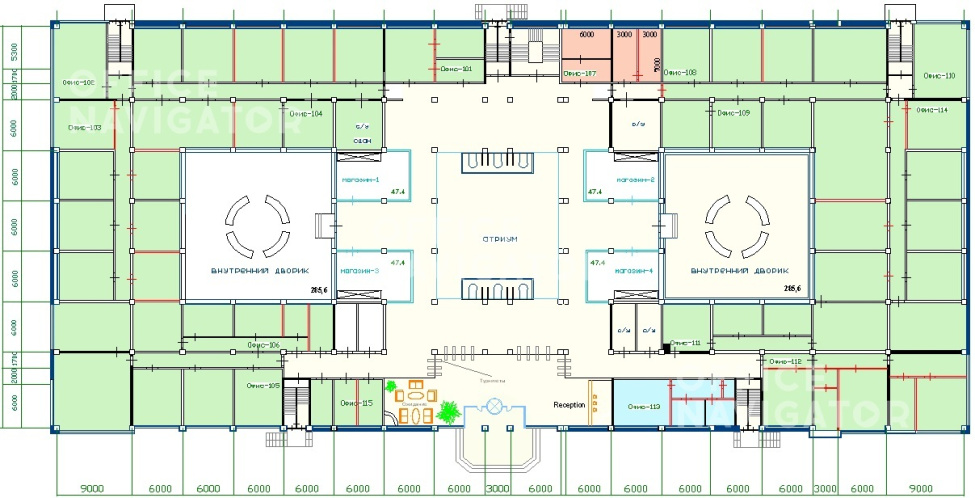 Панорамное остекление. Сетка колонн – 6х6 м. Высота потолков – 3,2 м.