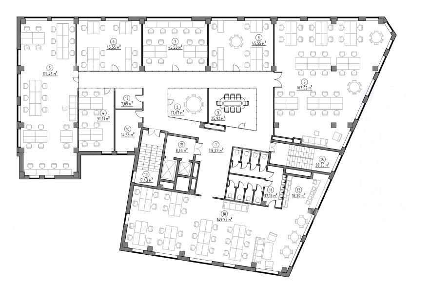 Эффективная планировка этажей позволяет адаптировать пространство под нужды бизнеса, а также размещать в помещениях больше рабочих мест, не жертвуя комфортом сотрудников.